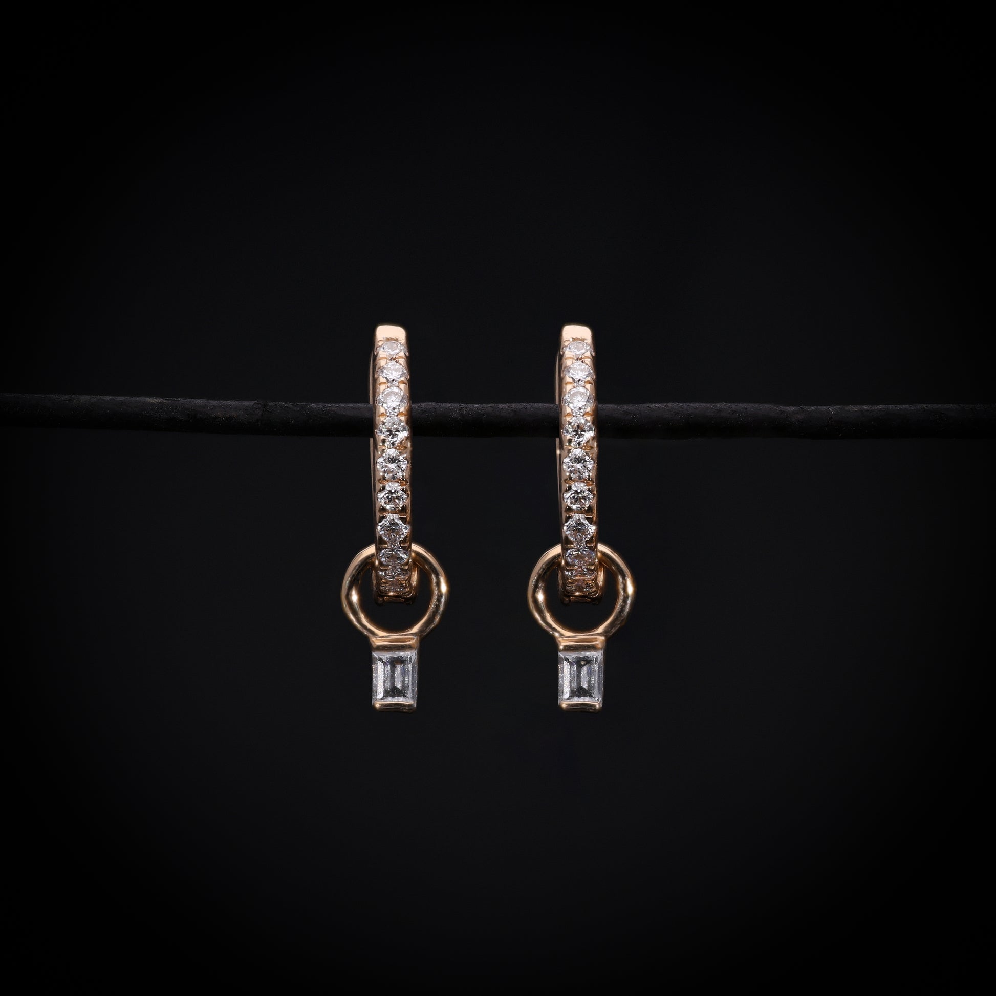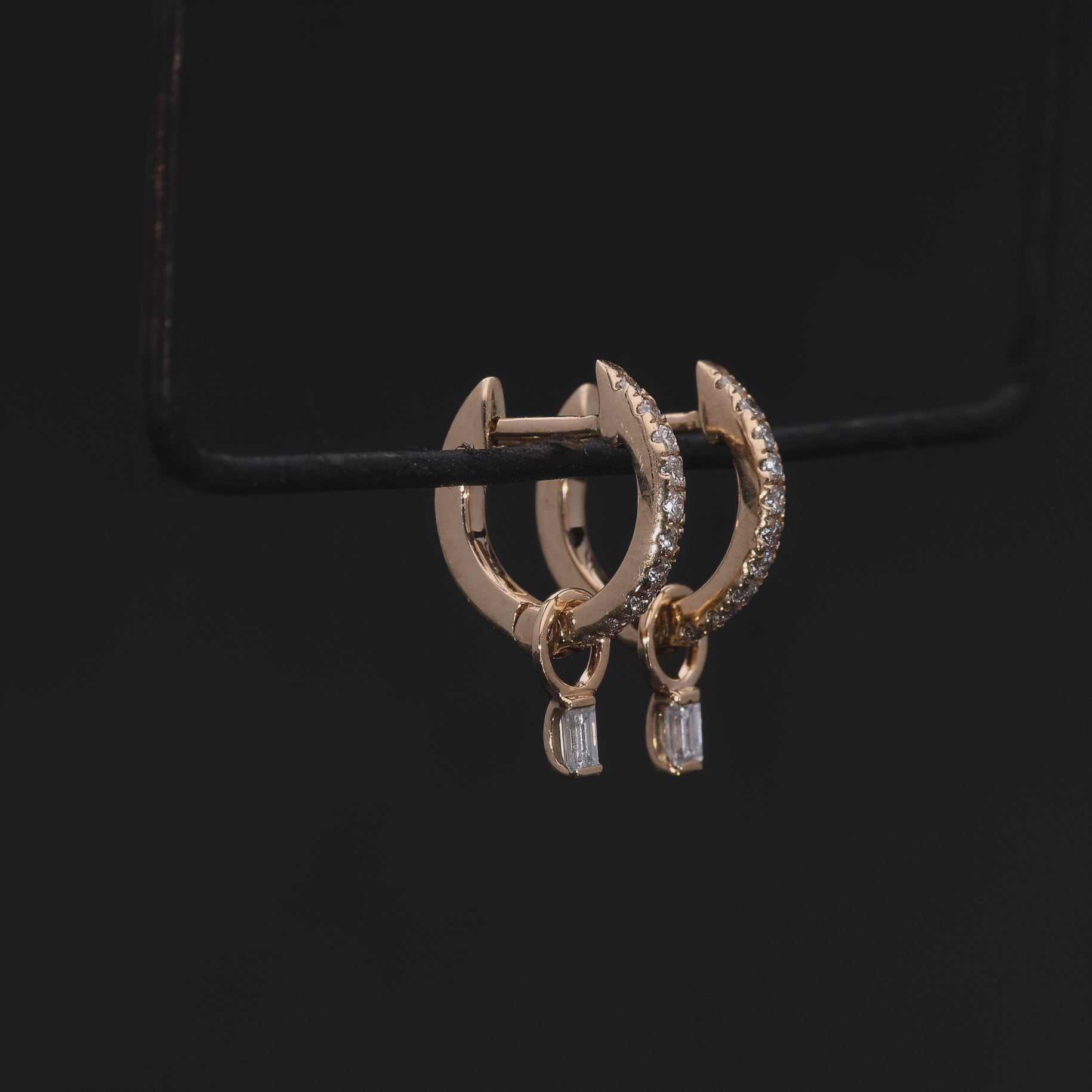 Baguette Charms Take your huggies to the next level with this classic baquette charm. Collection: Charms Setting: Pave Type: Pairs with Huggies Metal: 14k Yellow Gold